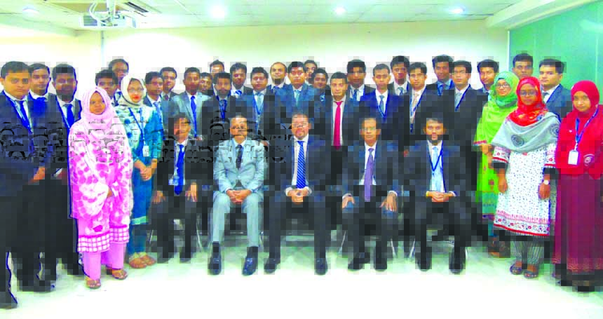 Farman R Chowdhury, Managing Director of Shahjalal Islami Bank Limited, poses with the participants of a 15-day long \'Foundation Training Course\' for the newly recruited Management Trainee Officers of the bank at its training institute recently.