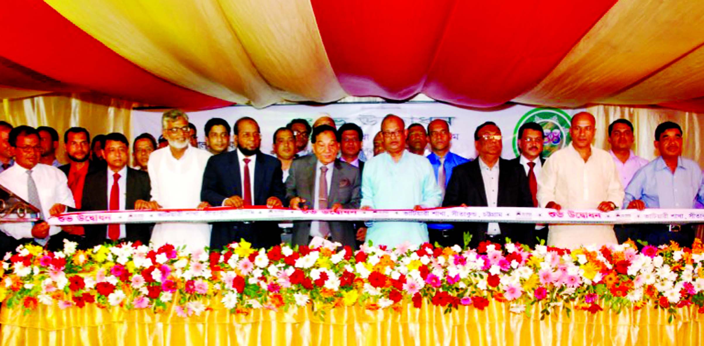 Khalilur Rahman, Chairman, Al-Arafah Capital Market Services Ltd. inaugurating the 144th Branch as chief guest at Bhatiari, Sitakunda in Chittagong on Sunday. Abdus Samad Labu, Chairman, Md. Habibur Rahman, Managing Director, Abus Salam, Vice-Chairman, Ah