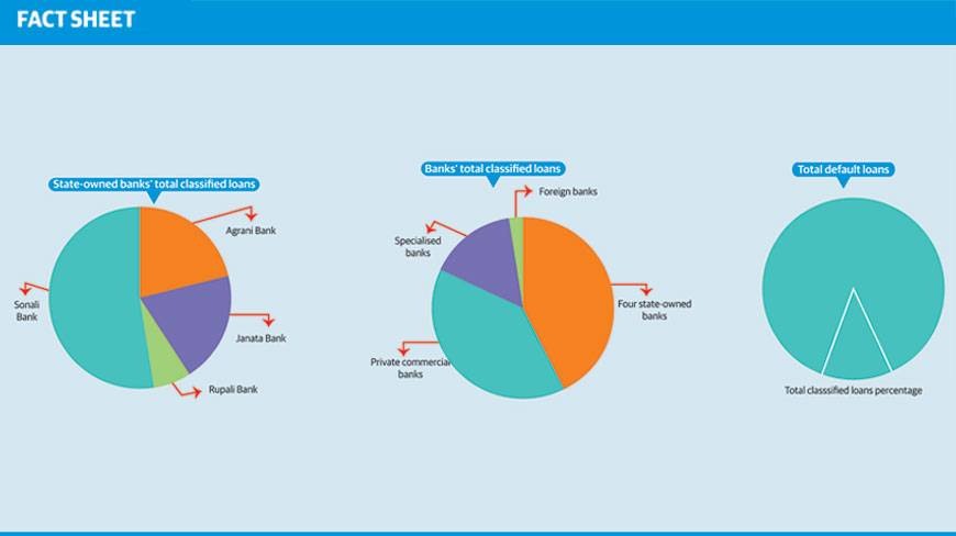 Of the state-owned banks, Agrani Bank’s classified loan stood at Tk51bn, Janata Bank Tk47bn, Rupali Bank Tk16bn and Sonali Bank Tk125bn.