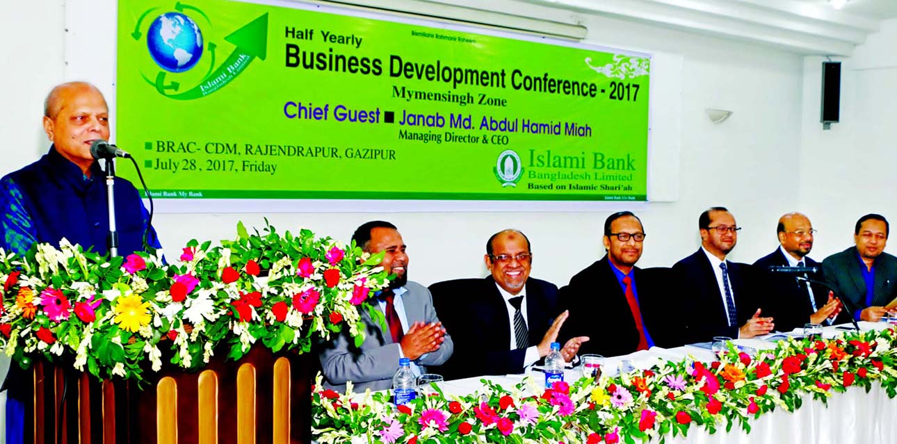 Md Abdul Hamid Miah, Managing Director of Islami Bank Bangladesh Limited, addressing the 'Business Development Conference of Mymensingh Zone' on Friday at BRAC-CDM auditorium in Gazipur.