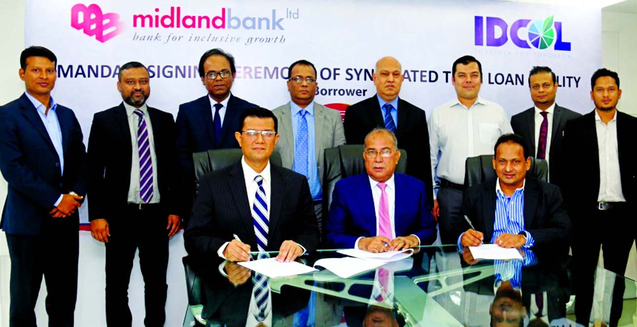 Md. Ahsan-uz Zaman, Managing Director of Midland Bank Limited, Mahmood Malik, Executive Director of Infrastructure Development Company Limited and Md Motiur Rahman, Managing Director of Kushiyara Auto Bricks Limited signing a tripartite agreement at the b