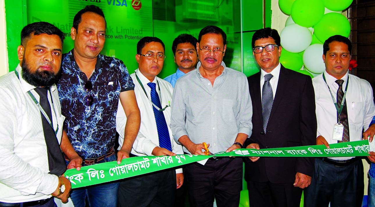 Md. Mahbubur Rahman Khan, Director of National Bank Limited, inaugurating an ATM booth at Goalchamat branch, Faridpur on Thursday. Md. Mahfuzur Rahman, Executive Vice President and Head of Card Division was also present.