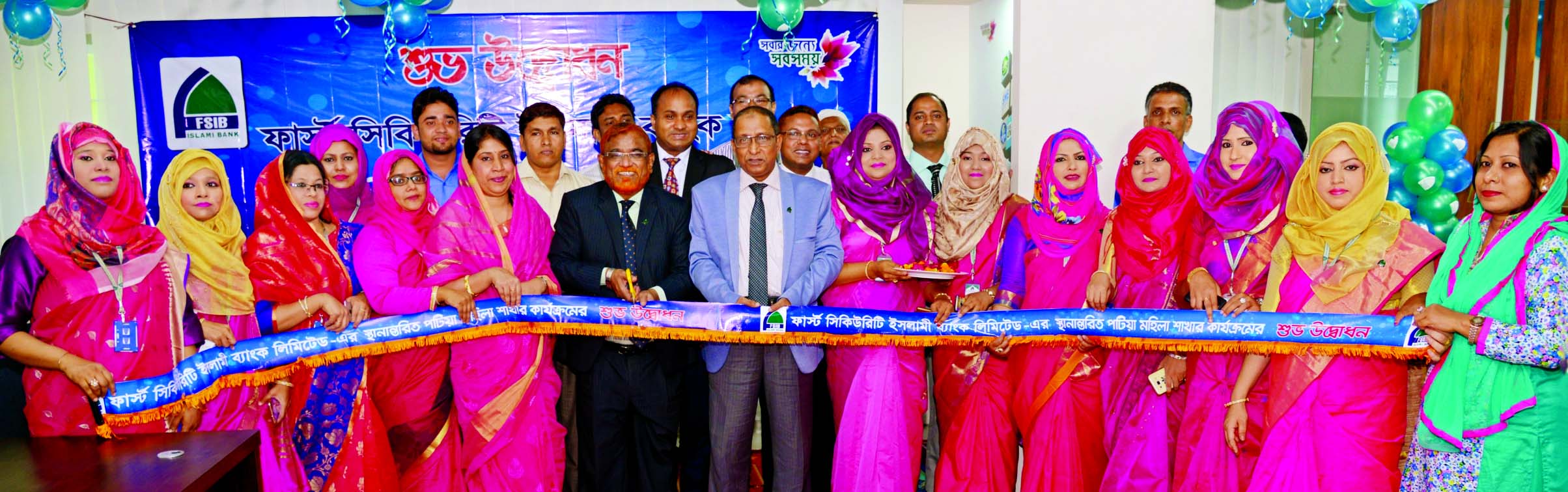 SM Nazrul Islam, Head of General Services Division of First Security Islami Bank Limited, inaugurating its shifted Mohila Branch at College Road, Patiya in Chittagong on Sunday. Md. Wahidur Rahman, Chittagong Zonal Head and Mukti Chowdhury, Manager of the