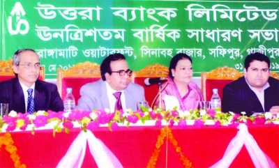 Azharul Islam, Chairman of Board of Directors of Uttara Bank Limited, presides over an AGM at Shafipur in Gazipur on Monday.