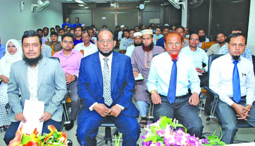 Md. Habibur Rahman, Managing Director of Al-Arafah Islami Bank Ltd. poses with the participants of a day-long training course on \'Shariah implementation in AIBL\' at the bank\'s training and research institute in the city recently. Manir Ahmad, EVP and M