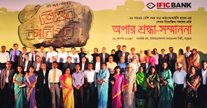 Managing Director and CEO of IFIC Bank Shah Alam Sarwar, along with others, poses for photograph at Long ServiceAward ceremony organised by the bank for its employees to acknowledge their 25 or more years of service to the bankin the city recently. The managing director also handed over crests and gifts among those employees at the ceremony.