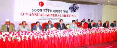 Zahur Ullah, Chairman of ONE Bank Limited, and Farzana Chowdhury, vice chairperson of the Bank, among others, seen at the 13th annual general meeting of the Bank in the city recently. The Bank declared 30 per cent stock dividend and also held the 5th extraordinary general meeting.