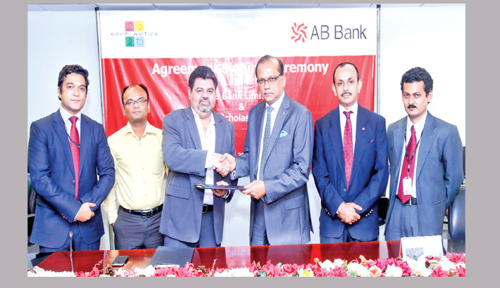 AB Bank Limited signed an agreement with Scholastica (Pvt.) Limited on collecting fees of students of Scholastica School. Shamim Ahmed Chaudhury, President and Managing Director of AB Bank and Amer Ahmed, Director of Scholastica (Pvt.) Limited signed the agreement. Syed Mizanur Rahman, Head of Consumer Banking of AB Bank and Mushfiqur Rahman, General Manager, Scholastica were present.