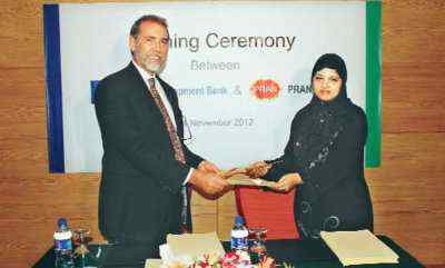 The ADB Wednesday signed an agreement with PRAN Group to help the company build three food manufacturing plants, said a press release.