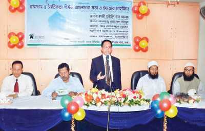 Kazi Towhidul Alam, Deputy Managing Director of Al-Arafah Islami Bank Limited, speaks at the Iftar party Elephant Road branches in Dhaka recently.
