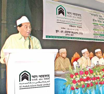 Md. Habibur Rahman, Managing Director of Al-Arafah Islami Bank Limited, speaks at a discussion meeting on “Ramjan o Al-Quran (Ramadan and Al-Quran)” organised by Khilkhet Branch of the bank on Sunday.