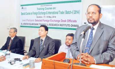 Md. Habibur Rahman, Managing Director, Al-Arafah Islami Bank Limited, speaks at a special training course on “Foreign Exchange and International Trade” at the Training and Research Academy of the bank in Dhaka recently.Al-Arafah Islami Bank Limited organised a special training course on “Foreign Exchange and International Trade” at the Training and Research Academy of the bank in Dhaka recently.