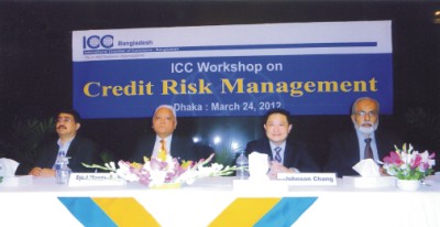 Syed Manzur Elahi, executive board member of International Chamber of Commerce-Bangladesh (ICCB) attends a workshop on credit risk management in Dhaka yesterday. Mamun Rashid, dean of BRAC Business School; Johnson Chang, chief risk officer of HSBC Bangladesh, and Ataur Rahman, secretary general of ICCB, were also present.