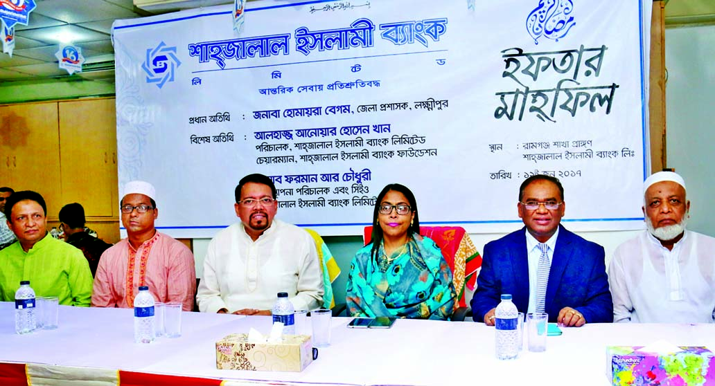 Anwer Hossain Khan, Chairman of Shahjalal Islami Bank Ltd Foundation, presiding over the discussion meeting on the significance of holy Ramzan and Iftar Mehfil at Ramganj Branch in Laxmipur on Monday. Farman R Chowdhury, Managing Director of the bank and
