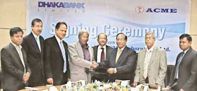 Khondoker Fazle Rashid, Managing Director of Dhaka Bank, and Mizanur Rahman Sinha, Managing Director of Acme Laboratories Limited, signed an agreement on behalf of their respective organisations at the bank’s head office in Dhaka on Wednesday, said a press release.