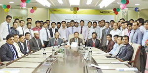 Dhaka Bank Limited declared 14 percent cash and 10 percent stock dividends for the bank’s shareholders for the year ended on December 31, 2014. The declaration came at the bank’s 20th Annual General Meeting (AGM) held at Bashundhara Convention Center 2 in Dhaka on Wednesday, said a press release. Abdul Hai Sarker, Chairman of the bank, presided over the meeting. Afroza Abbas, former vice-chairperson and Sponsor Shareholder, Reshadur Rahman, former chairman and Director, ATM Hayatuzzaman Khan, former chairman, Altaf Hossain Sarker, Mohammed Hanif, Md Amirullah, Abdullah Al Ahsan, Tahidul Hossain Chowdhury, Jashim Uddin, Khondoker Jamil Uddin, and Amanullah Sarker, Directors, Suez Islam and Syed Abu Naser Bukhtear Ahmed, Independent Directors, Aminul Islam, Khandaker Mohammad Shahjahan, Rakhi Das Gupta, former directors, and Niaz Habib, Managing Director of the bank, attended the meeting. Emranul Huq, Khan Shahadat Hossain, Shakir Amin Chowdhury, Deputy Managing Directors, Arham Masudul Huq, Company Secretary, and a good number of shareholders of the bank were present on the occasion.