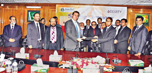 In presence of Engr. Mustafa Anwar, Chairman (Acting), Engr. Md. Eskander Ali Khan, Chairman, Executive Committee and Mohammad Abdul Mannan, Managing Director and CEO of Islami Bank Bangladesh Limited the agreement was signed between Abdus Sadeque Bhuiyan, Executive Vice President and DCAMLCO of Islami Bank and Sean Norris, Asia Pacific Director of Accuity. Senior Executives of Islami Bank and officials from Accuity were also present on the occasion.