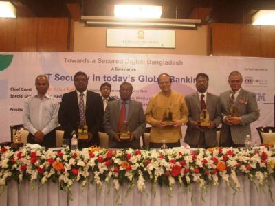 Atiur Rahman, governor of Bangladesh Bank, attends a seminar on 'IT security in today's global banking' arranged by Bankers' CTO Forum, IBM and TISL at Sonargaon Hotel in Dhaka on Thursday. Anil Menon, director of marketing and communication at IBM Software Group, was also present.