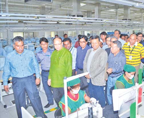 Bangladesh Bank Governor Dr Atiur Rahman seen visiting the factory of Plummy Fashions, the first green knit garments unit in the country, at Fatullah in Narayanganj on Saturday.