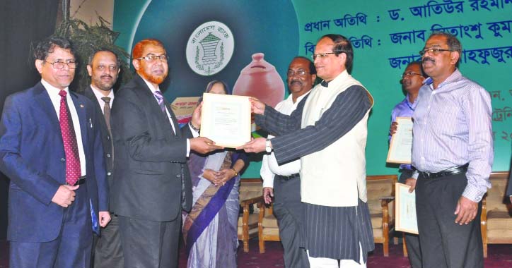 Bangladesh Governor Dr Atiur Rahman, handing over "School Banking Award" by Bangladesh Bank to Abdus Sadeque Bhuiyan, Deputy Managing Director of IBBL at Bangladesh Bank Training Academy recently