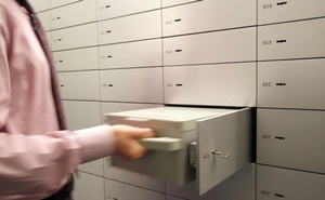 FILE PHOTO - An employee checks a safe box at the vault of Swiss UBS bank in Zurich-Zollikon, Switzerland January 21, 2009. REUTERS/Arnd Wiegmann/File Photo