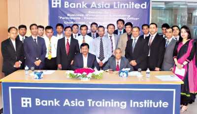 Md Mehmood Husain, President and Managing Director of Bank Asia, along with participants seen at the bank’s training institute at Panthapath in Dhaka recently.