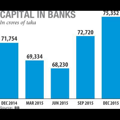 The banks' capital stood at Tk 75,352 crore on December 31, which was 10.84 percent of their total risk-weighted assets. The amount was Tk 72,720 crore on September 30.