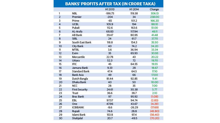 The banks with increased earnings by more than 50% are UCBL, Mercantile, Exim Bank, City Bank and Al-Arafah Bank.