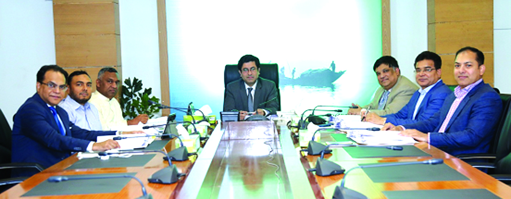 Barrister Sheikh Fazle Noor Taposh MP, EC Chairman of Modhumoti Bank Limited, presiding over the 58th meeting at the banks head office in the city on Thursday. Md Shafiul Azam, Managing Director of the bank, Mohammad Ismail Hossain, Managing Director of S