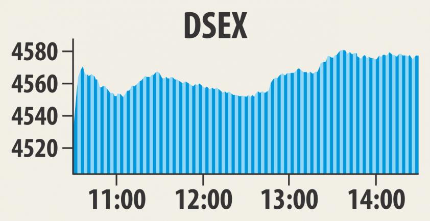 DSEX, the benchmark index of Dhaka Stock Exchange, jumped up 67.33 points or 1.49 percent, finishing the day at 4,578.87 points.
