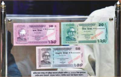 Bangladesh Bank yesterday released three banknotes of Tk 10, Tk 20 and Tk 50 denominations with the image of Bangabandhu Sheikh Mujibur Rahman to mark the historic 7th March.