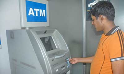 A file photo shows a man using ATM at a booth in Dhaka. Bangladesh Bank is going to put a cap on annual fee of debit cards offered by scheduled banks as some of them impose excess charge on their clients for using the product.