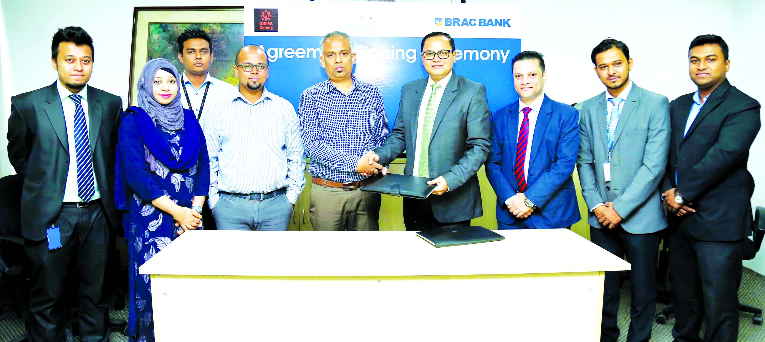 BRAC Bank Limited inked a deal with Aarong at the bank's head office on Saturday. Under the agreement, TARA Debit/Credit holders will enjoy Aarong membership card with a purchase worth of BDT 1,000 only and will also enjoy 5pc extra reward points on their