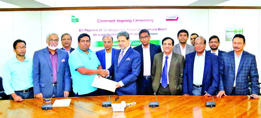 Choudhury Moshtaq Ahmed, Managing Director (CC) of National Bank Limited and Md. Zahidur Rahman, Chief Technical Officer, System Resources Limited, signed an agreement for Electricity Bill collection at NBL's head office on Tuesday. AMDs of the bank Wasif