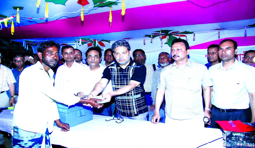Choudhury Moshtaq Ahmed, Managing Director (Current Charge) of National Bank Limited, distributing cash money, dry foods and medicine among the flood affected people at Jamalgonj, Sunamgonj recently. AMD Wasif Ali Khan, DMDs ASM Bulbul and Shah Syed Abdul