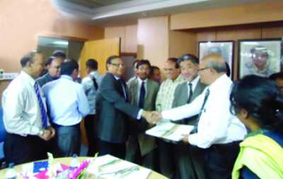 Commercial Bank of Ceylon PLC signed a Participation Agreement with Bangladesh Bank recently under 'JICA assisted Financial Sector Project for the Development of Small and Medium Enterprise Financing in Bangladesh'. Dilip Das Gupta, Senior General Manager of CBC seen exchanging the documents with Senior Officials of BB and JICA representative.