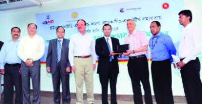 Smiling Sun (Surjer Hashi) hosted the inaugural ceremony of the Smiling Sun online Managemment Information System (MIS) at Rangamati recently. Dutch-Bangla Bank donated 320 Net Books, valued Tk 7.25 million, which will enable all 320 Smiling Sun locations to connect to the Smiling Sun online MIS system. Mr Sayem Ahmed, Chairman of the Executive Committee of the Board of Dutch-Bangla Bank (guest of honour) presented the Net Book to Mr Richard Greene, Mission Director of USAID.