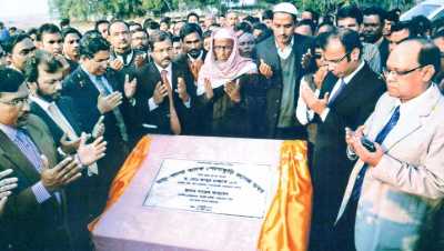 Food Minister Dr. Md Abdur Razzaque, and M Sahabuddin Ahmed, founder and Chairman of Dutch-Bangla Bank Foundation are seen praying after unveiling the stone-plaque at Modhupur in Tangail recently.