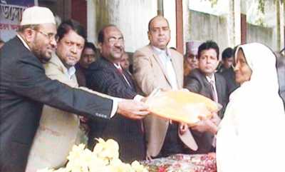 Deputy Governor of the Bangladesh Bank SK Shur Chowdhury distributes blankets to the distressed freedom fighters and the poor on behalf of First Security Islami Bank Limited in Natore Saturday.