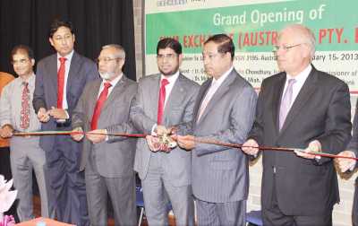 Lt. Gen. Masud Uddin Chowdhury, High Commissioner of Bangladesh to Australia, inaugurates Exim Exchange (Australia) Pvt. Limited at Sydney in Australia recently. Dr. Mohammed Haider Ali Miah, Managing Director of Exim Bank is also seen.