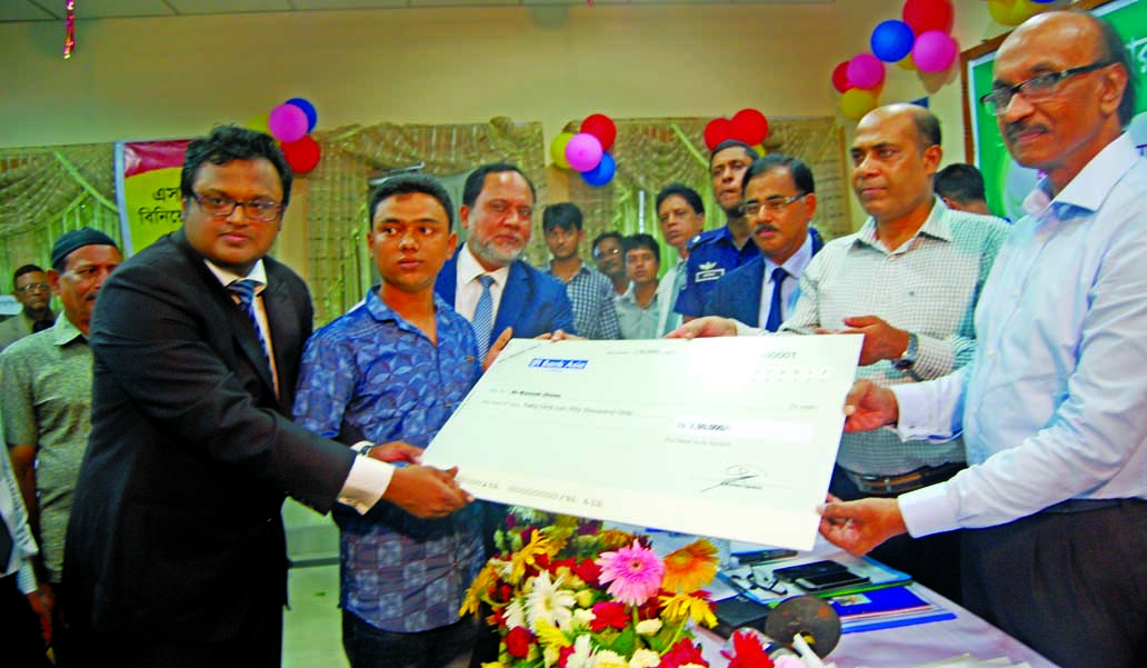 Fazle Kabir, Governor of Bangladesh Bank, handing over sanction of SME Entrepreneur Loan of Bank Asia Ltd to a client at a function at Kishoregonj DC Office on Saturday. The loan was sanctioned through Niyamotpur Agent Outlet, Kishoreganj. Deputy Commissi