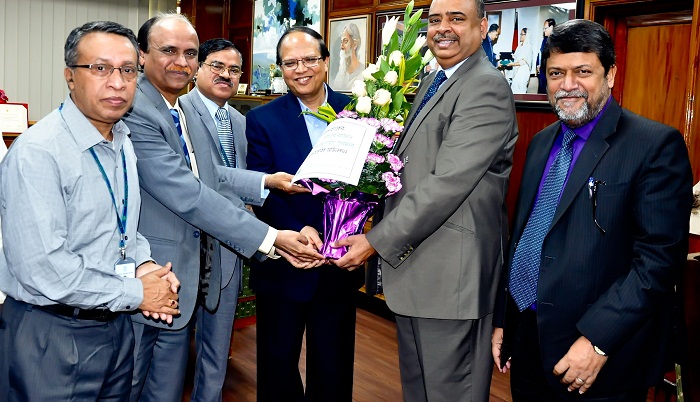 Syed Waseque Md. Ali, Managing Director and Quazi Osman Ali, Additional Managing Director of First Security Islami Bank Limited call on Dr. Atiur Rahman and congratulated him with floral wreath.