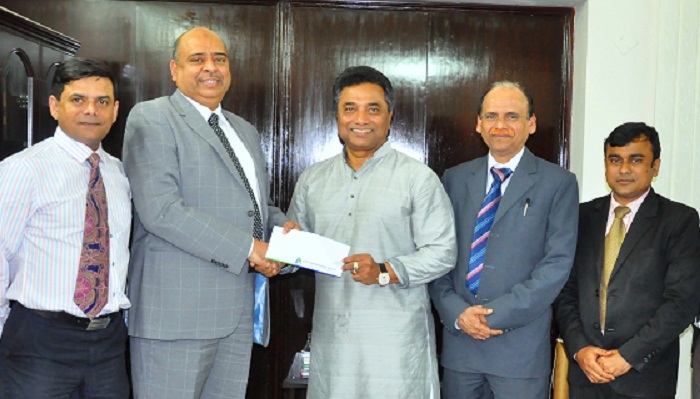 Syed Waseque Md. Ali, Managing Director and Quazi Osman Ali, Additional Managing Director of First Security Islami Bank Ltd. handed over the cheque to the DNCC mayor Annisul Huq at the Mayor’s office in Gulshan, Dhaka.