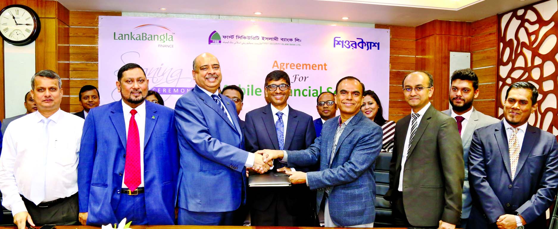 Syed Waseque Md Ali, Managing Director, First Security Islami Bank Limited, Khwaja Shahriar, Managing Director, LankaBangla Finance Limited and Dr Shahadat Khan, CEO, Progoti Systems Limited signed a tripartite agreement for providing Mobile Financial Ser