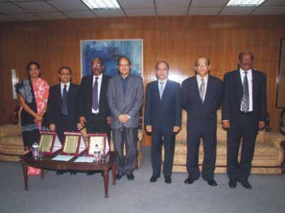 Dr Atiur Rahman, governor of Bangladesh Bank, poses with the departing deputy governors of the bank: Nazrul Huda, Ziaul Hassan Siddiqui, and Murshid Kuli Khan at their farewell. The newly appointed deputy governors: Nazneen Sultana, Abu Hena Mohd Razee Hassan and Shitangshu Kumar Sur Chowdhury were also present.