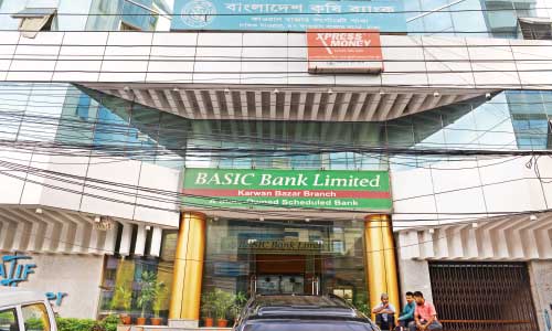 A file photo shows branches of Bangladesh Krishi Bank and scam-hit BASIC Bank at Karwan Bazar in Dhaka. The government has decided to amend at least three acts including the Bank Company Act (1991) that regulate banking operations to include bailout measures to shore up troubled banks with injecting prompt liquidity assistance.