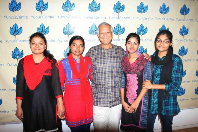 The four students are part of more than 50 students of Grameen families who have secured scholarships to pursue studies in various fields around the world.
