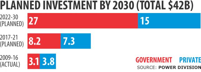 To implement the proposed ongoing power projects which will generate about 10,700MW electricity, the country will require a total investment of $15.5 billion, out of which the public sector is investing $8.2 billion and the private sector investment will be $7.3 billion.