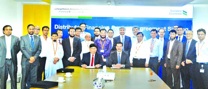 LafargeHolcim Bangladesh Limited (LHB) has become the latest partner to sign up with Standard Chartered Bank (SCB) for 'Distributor Financing" program - a financing program offered by SCB for the distributors of LHB to enhance their business capacity. This global program is part of the Bank's 'Banking the ecosystem' initiative, which aims at deepening relationships with corporate clients, and their buyers, says a media release.