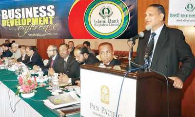 Prof. Abu Nasser Muhammad Abduz Zaher, chairman of Islami Bank Bangladesh Limited, addressing the inaugural session of Annual Business Development Conference of the Bank at a city hotel yesterday.